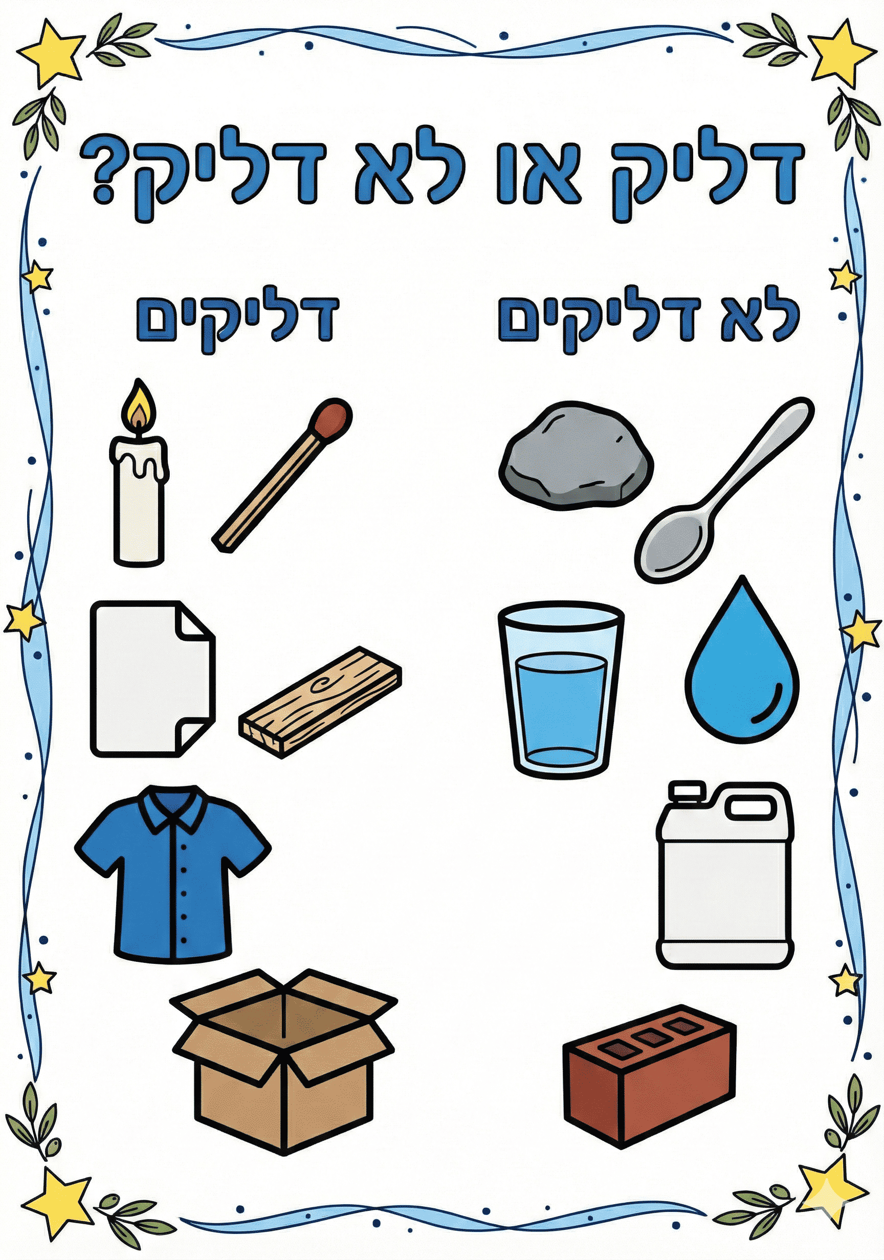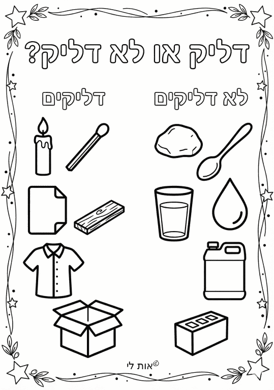 דליק או לא כמות בחבילה:ערכה מושלמת ל - 20 ילדיםחומר:בריסטול מודפס וחומרי יצירה להדבקהמידות:דף עבודה A4מק"ט:2833הערות:ערכה ליצירה - ההרכבה והצביעה להמחשת המוצר